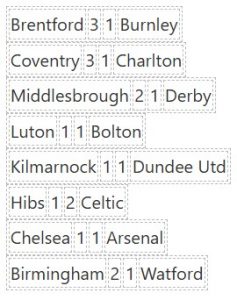 Proper harsh this week, but some of you were on a roll…most popular score was Boro’s 2-1 win over Derby – 24 of youse got that!